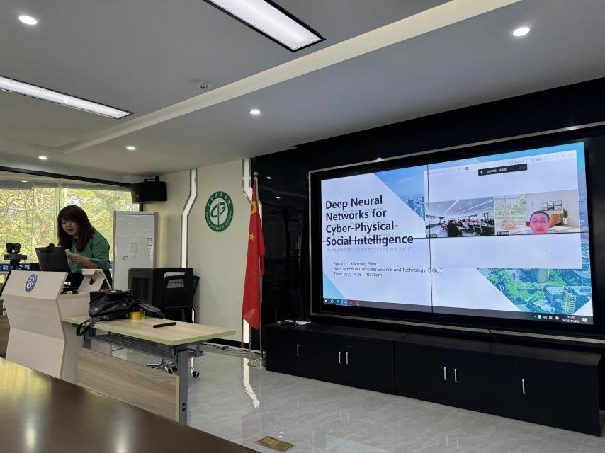 随着泛在计算、移动计算和社会计算等新兴计算范式的蓬勃发展,人们的工作、生活、学习与娱乐方式发生了深刻变化,受到学术界和产业界的广泛关注。2025年11月27日,我院邀请日本关西大学周晓康教授线上为国际学术周作题为“Deep Neural Networks for Cyber-Physical-Social Intelligence”的报告。报告会由计算机科学技术学院安妮老师主持,师生于计算机楼9A206会议厅集中聆听。