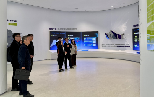 在基地工作人员的引导下,调研团队先后参观了AI中试基地展厅、灵犀岛人工智能小镇规划展区及成果展示区,详细了解了基地在消费领域移动终端方向的业务布局、运行模式与发展规划。从“莞深一体・移动终端世界级集聚区”的产业优势,到“新型工业智变平台” 的建设目标,再到各类人工智能创新产品的实物展示,调研组成员对中试基地在技术转化、产业赋能等方面的实践成果有了直观且深入的认识。